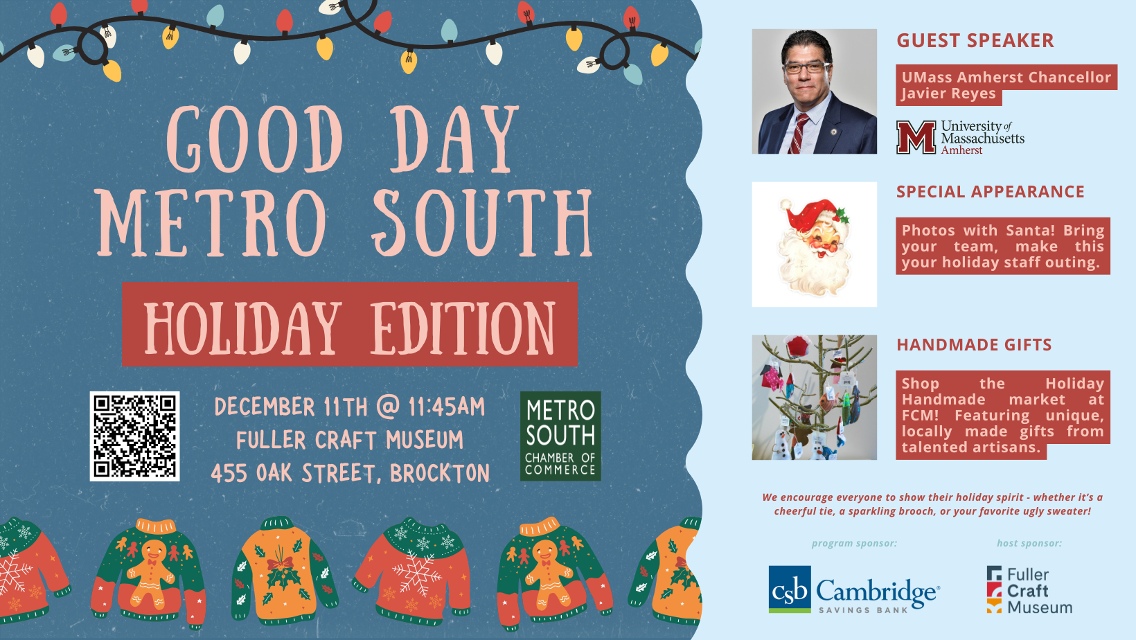The Metro South Chamber of Commerce is a private, non-profit business association based in the City of Brockton, Massachusetts. The Metro South Chamber of Commerce supports and promotes the local business community through leadership in public advocacy, education, networking, information and community development.